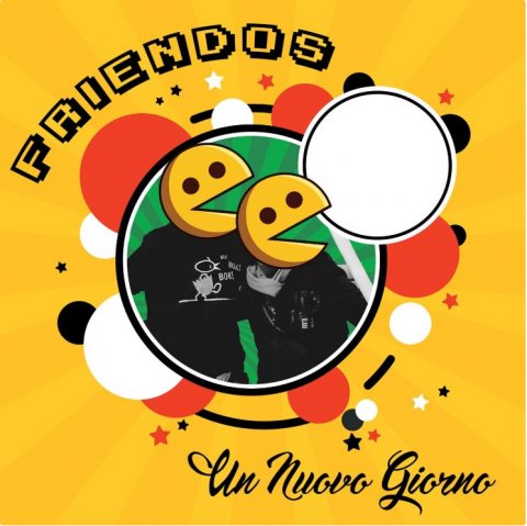 Behind the Friendos-project are the two guys Bietto aka Fabio Iulianello from Italy and McW aka Michael Waust from Denmark. The name "Friendos" comes from a weird mash-up of the englsh word Friend with an o in the end to make it sound italian, and then when plural it ofcause makes: Friendos! It has become a intern greeting between the two, and normally it is followed by the " :V " icon as the faces on the cover shows. The photo is from when they met in real life, in Turin, Italy at a Gigi D'Agostino-show.